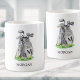This classic ceramic mug features a stylish grey watercolor golf bag filled with clubs, surrounded by a touch of green grass. The design is printed on both sides of the mug for easy viewing whether you’re left- or right-handed. A simple serif font initial monogram is placed directly on the golf bag, blending seamlessly into the artwork. Below the monogram, the full name is displayed in a matching serif font for a clean and personalised touch. The monogram is currently in a dark grey, almost black, to match the bag’s accents, but you can customise it to any colour you prefer.