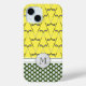 Add a monogram to the 'golf ball' to personalise this striking case coloured yellow, green, white and black. It has two golfing-themed patterns: crossed golf clubs on yellow, and polka dot golf balls on green.