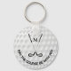 Add your own caption and initial to personalise this keychain. Designed for a keen golfer, the default text is "MAY THE COURSE BE WITH YOU". The fun design has two golf clubs on a golf ball background.