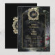 This black and gold gothic wedding invitation, featuring a gothic ruins with red roses scene, can be personalized with your monogram and event information in elegant typography. Designed by Thisisnotme©
