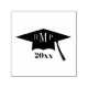 A graduation rubber stamp featuring an illustration of a graduation cap. Personalise the monogram and year.