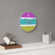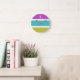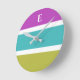 A modern wall clock with striped design in pink, green, blue and white. Personalise the clock with your initial, which will appear as a white capital letter at the top of the clock face. The eye-catching clock makes a useful and attractive addition to the home, as well as a stylish gift in contemporary style.