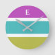 Monogram Green Blue Stripe Contemporary Wall Clock