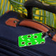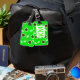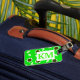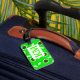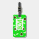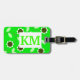 Luggage tag with bright colours. Vivid green with white floral pattern. Add your initials.