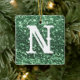 Monogram Green Glitter Metallic Christmas Holiday Ceramic Ornament