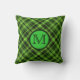 Monogram Green Plaid Throw Pillow