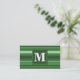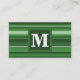 Monogram green stripes business card