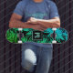 Monogram green turquoise ombre leaf pattern cool skateboard