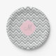 Monogram Grey and White Chevron with Pastel Pink Paper Plate