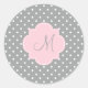 Monogram Grey, White and Pastel Pink Polka Dot Classic Round Sticker