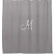 Personalised faux grey linen shower curtain with a white monogram initial and script name in black. The linen is a photo effect background. A modern and trending minimalist style.
