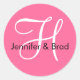 Pink White Monogram Initial with Bride and Groom Names Wedding Favour Labels. Elke Clarke© Awesome way to label your wedding treat bags, wedding favour boxes or tins, or wedding cake boxes. Fully customisable