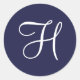 Monogram H, White on Navy Blue, Classic Round Stic Classic Round Sticker