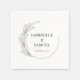 This wedding napkin features a clean and minimal design accented with a graphic of a wreath with leaves on a white background. Personalise with the names of the bride and groom and their wedding date.
