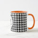 A classic black and white houndstooth print, with a modern initial and your text below it. This is an 11oz. combo colour beverage mug, also available in 15oz. size. Choose from 9 colours for handle and inside. Easily change initial and text using the Template provided. The little witch icon can also be removed using the Design Tool in the Template to use year-round. Makes a perfect Halloween beverage mug or change the combo colour for an everyday mug. See "About This Product" at side for more information.