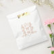 White and rose gold coloured monogram wedding or couples event favour bag. Ideal for a white and rose gold themed wedding. Other matching wedding items available. © Monogram crest with a heart crown on top and entwined with berries and leaves original hand drawing and design by Sarah Trett for www.mylittleedenweddings.com exclusively on Zazzle.