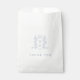 Silver and white coloured monogram wedding or couples event favour bag. Ideal for a silver grey and white themed wedding. Other matching wedding items available. © Monogram crest with a heart crown on top and entwined with berries and leaves original hand drawing and design by Sarah Trett for www.mylittleedenweddings.com exclusively on Zazzle.