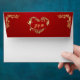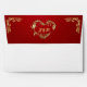 This design features a gold scroll heart on a crimson red background on the inside flap, borders on front with heart monogram on back flap.