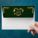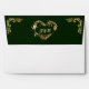 This design features a gold scroll heart on an emerald green background on the inside flap, borders on front with heart monogram on back flap.