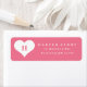A fun, bright customisable return address label. This label features a large white heart with single monogram on a bright background and white text. This label can also be used for labelling kid's belongings for back to school. Simply swap the address for a phone number or teacher's name and classroom number. Perfect for lunch boxes, pencil cases and backpacks. Click the edit button to customise.