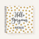 A chic gold and white polka dot sketchbook with the words, Hello gorgeous. A chic and stylish sketch pad. Fun for back to school for tween girls. Designed for you by Blackberry Boulevard.