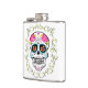 Show your style with this chic trendy hipster Sugar Skull flask. A sweet sugar skull with various flowers and roses with a funky urban cool design featuring ornate swirls and vintage texture patterns. A frame of vines surrounds the skull. Celebrate Mexico's Day of the Dead or Dia de los Muertos with this unique skeleton calavera. Perfect for party favour or best man and groomsmen gifts. .Click Customise It to add monogram or name and create your own unique one of a kind design! By Marisu Valencia™.