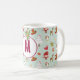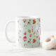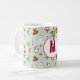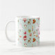 Monogram Holiday Christmas Elf Mug. Design features a cheerful Christmas pattern of elves,Christmas trees, wrapped gifts, snow against a winter blue background. Change the Letter to that of your choice!