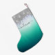 Monogram Script Silver Glitter Holiday Keepsake Small Christmas Stocking with modern turquoise purple ombre and drip glitter. Simply add a name to make this personal by clicking the "Personalise" button