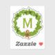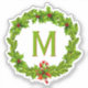 Christmas holly berry wreath sticker with single monogram for gift wrap or decoration.
