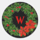 Monogram Holly Wreath Christmas on Black Classic Round Sticker