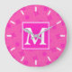 Monogram hot pink circles pattern large clock