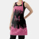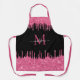 Cute Girly Monogram Black Metallic Hot Magenta Pink Dripping Glitter Apron