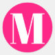 Monogram hot pink fuchsia white initial number Classic Round Sticker.