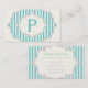 Monogram in a frame and aqua, white stripes eye catching business cards, featuring your monogram in an elegant and classy ivory frame with grey outline. There is another frame under it with a striped pattern in turquoise blue, white. This stylish, girly design is modern with a retro/vintage flair. The Parisian font is used for your text. It is completely customisable and you can customise it and add your text, name or initials. You can change background colour - turquoise- choosing from the Zazzle colour chart. This sophisticated personalised business card design is perfect for personal or professional use.