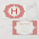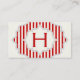 Monogram in a frame and red, white stripes eye catching business cards, featuring your monogram in an elegant and classy ivory frame with grey outline. There is another frame under it with a striped pattern in red, white. This stylish, girly design is modern with a retro/vintage flair. The Parisian font is used for your text. It is completely customisable and you can customise it and add your text, name or initials. You can change background colour - red- choosing from the Zazzle colour chart. This sophisticated personalised business card design is perfect for personal or professional use.