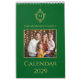 A family photo calendar with an elegant green and gold cover with a vintage air.