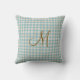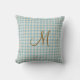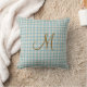 Monogram Initial Brown Light Blue and Tan Plaid Cushion