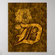 Monogram Initial D Gold Peony Floral Poster