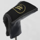 Classy personalised black golf putter head cover featuring your monogram initial in chic gold. A wonderful gift for the avid golfer, Dad, your boss, or favourite golf partner. Suitable for both men and women. Shown is the editable letter W.