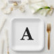 Monogram Initial Elegant Custom Name Black White Paper Plate