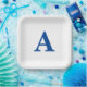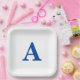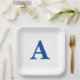 Monogram Initial Elegant Custom Name Blue White Paper Plate