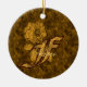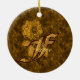 Monogram Initial F Elegant Gold Peony Personalized Ceramic Tree Decoration