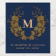 Monogram Initial Gold Floral Pattern Navy Blue Wine Label