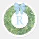 Monogram Initial Inside Boxwood Wreath With Bow Classic Round Sticker