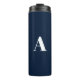 Custom monogram initial letter dark navy blue and white Thermal Tumbler.