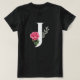 Monogram Initial Letter J in White with Pink Rose T-Shirt