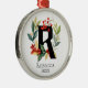 Monogram Initial Letter R Berry Wreath Christmas Metal Tree Decoration