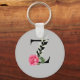 Monogram Initial Letter Z in Black with Pink Rose Key Ring