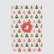 A retro-style mid-century Christmas tree pattern with with triangles, stars, snowflakes and diagonal stripes. Colours include; red, green, pink and white. This design can be personalised with an initial (monogrammed).