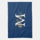 Monogram Initial Name Script Navy White Gold Tea Towel